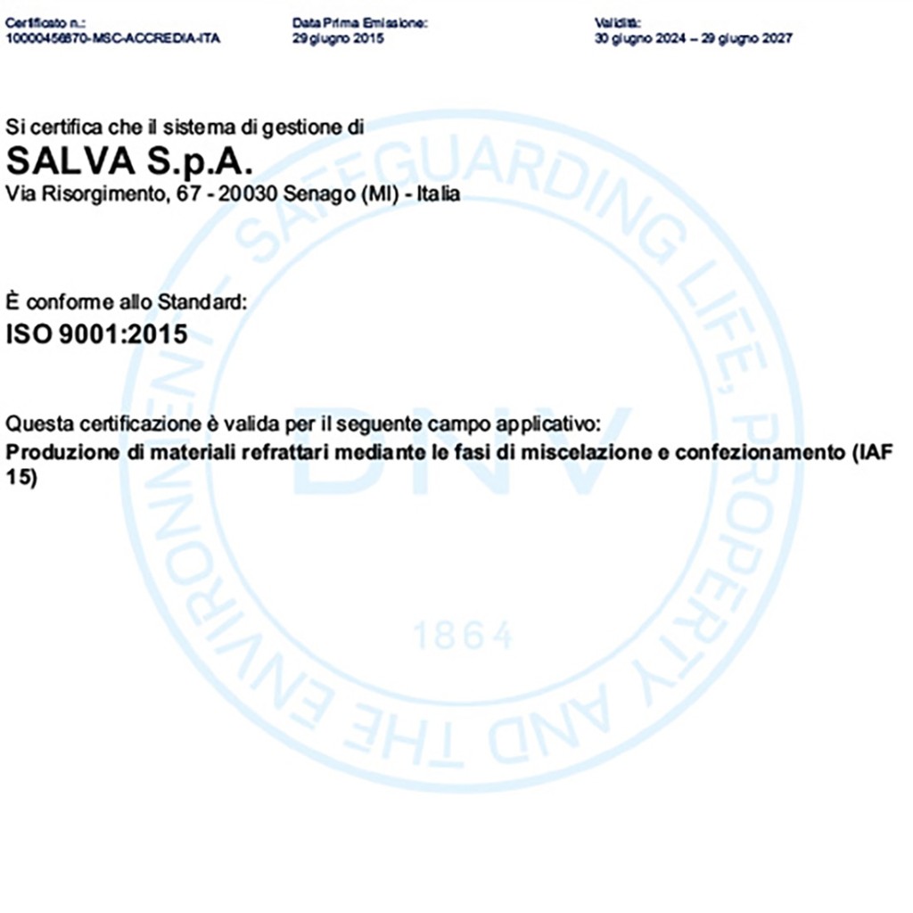 Salva, industria refrattari speciali, assicura una gamma completa di calcestruzzi densi ed isolanti, plastici, cementi, coatings e mastici, oltre a prefabbricati di ogni forma e dimensione… e naturalmente tutti gli accessori e le attrezzature per la installazione.